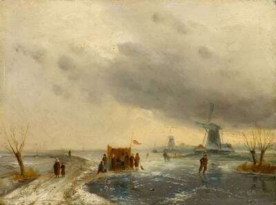 CHARLES LEICKERT (DUTCH 1816-1907) FIGURES IN A WINTER LANDSCAPE WITH WINDMILLS