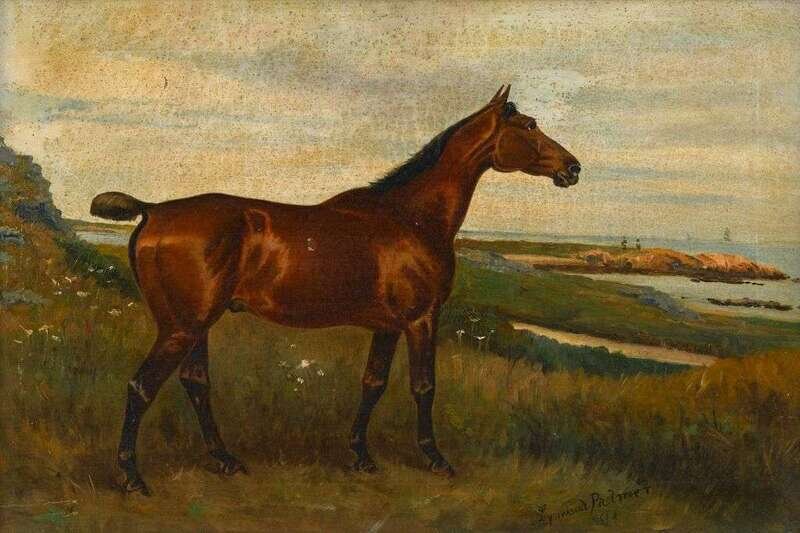 JAMES LYNWOOD PALMER (BRITISH 1868-1941) A BAY HUNTER IN A LANDSCAPE