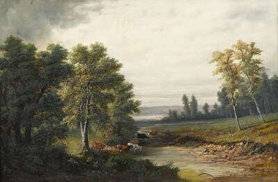 HENRY BOESE (AMERICAN 1824-1863) CATTLE GRAZING