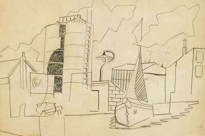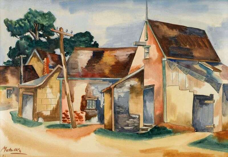 JAN MATULKA (AMERICAN/CZECH 1890-1972) HOUSES AND TELEGRAPH POLES