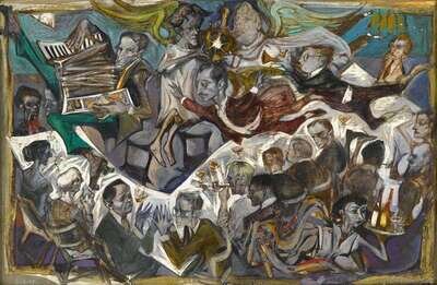 HENRY SCHWARTZ (AMERICAN 1927-2009) "THE MARRIAGE AT CANA BY VERONESE AS PARODIED AND FURTHER PARODIED BY HENRY SCHWARTZ USING THE FACULTY OF 1951"