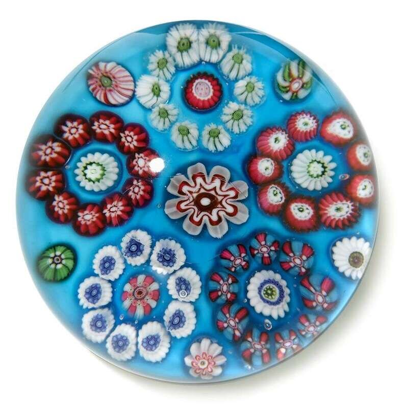 Antique Clichy millefiori rondele turquoise ground paperweight