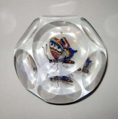 Unusual French enameled butterfly facetted paperweight
