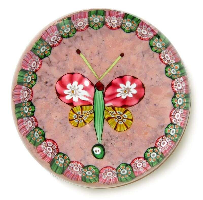 Paul Ysart millefiori garland and butterfly paperweight