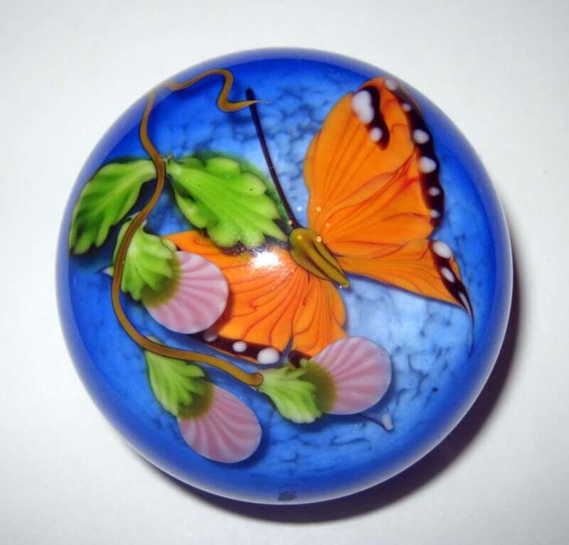Mayauel Ward butterfly and flowering vine paperweight dated 2009