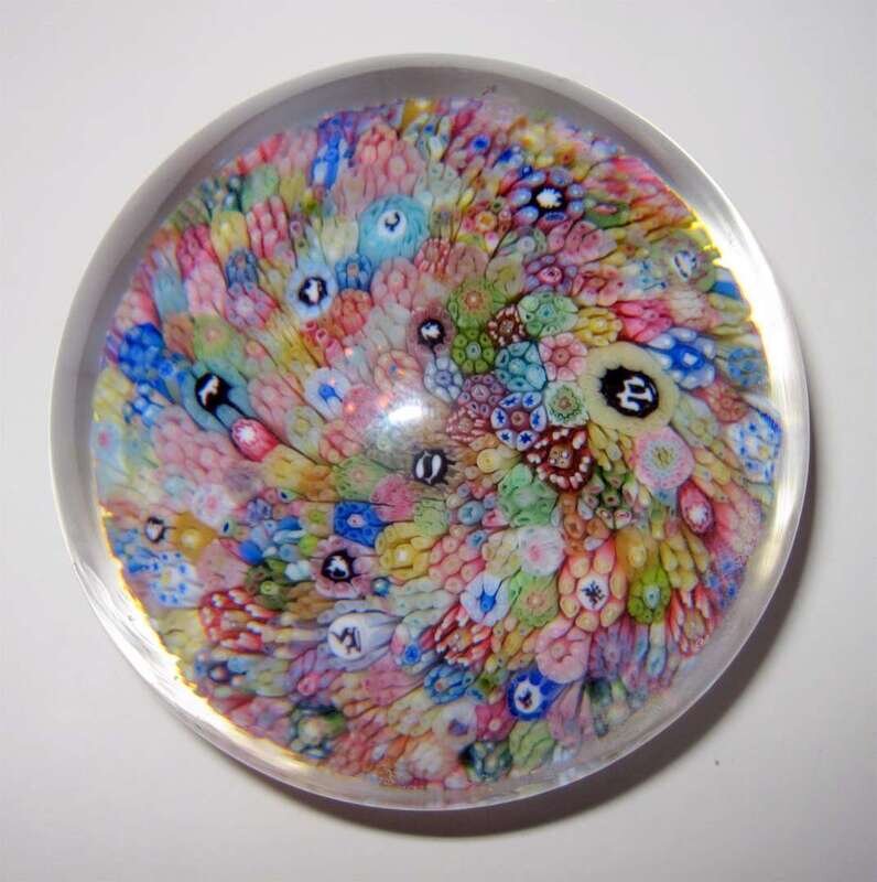 Baccarat "Zodiac" millefiori paperweight date cane for 1967