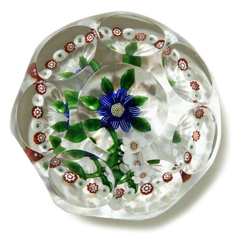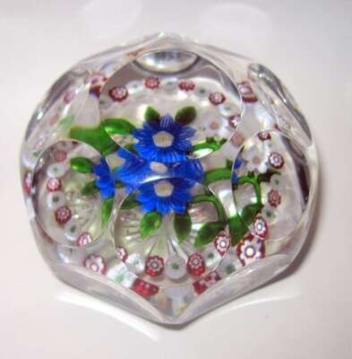 Antique Baccarat two flower and millefiori garland faceted paperweight