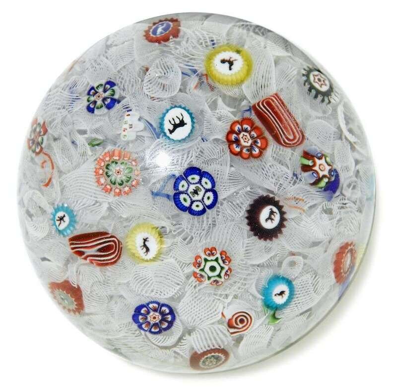 Rare Antique Baccarat magnum spaced millefiori paperweight date cane for 1848