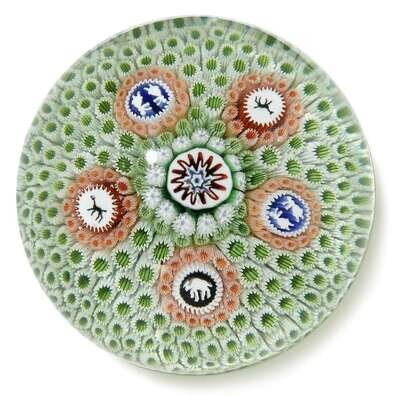 Antique St. Louis green carpet ground paperweight circa 1850
