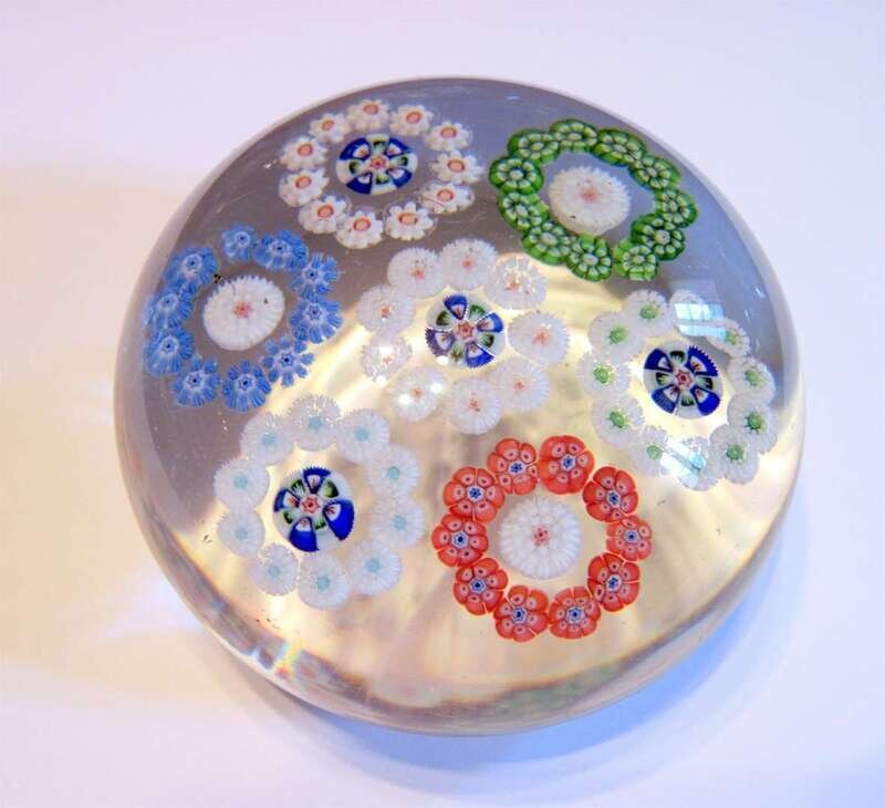 Antique Baccarat patterned millefiori rondele paperweight