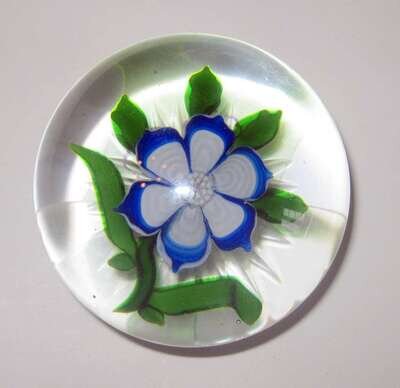 The flower with six blue edged white petals, with green leaves; with star cut base.