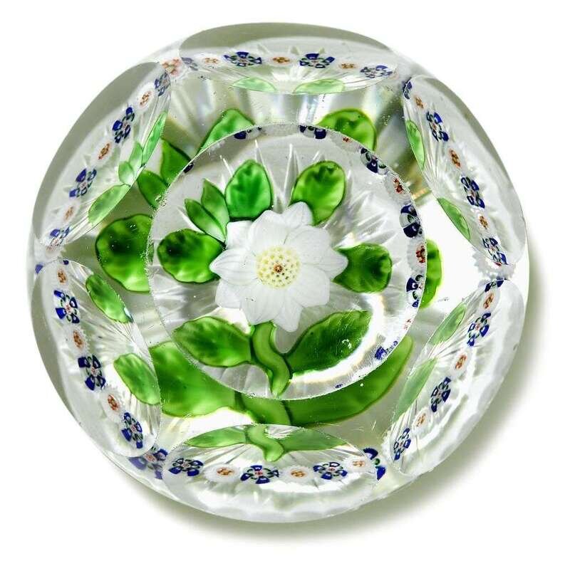 Antique Baccarat Clematis and millefiori garland facetted paperweight