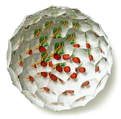 With two cherries, and allover diamond faceting, underside with strawberry cut.