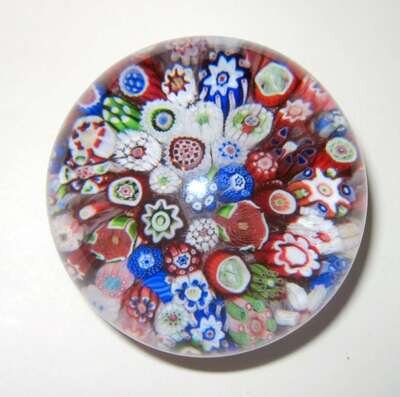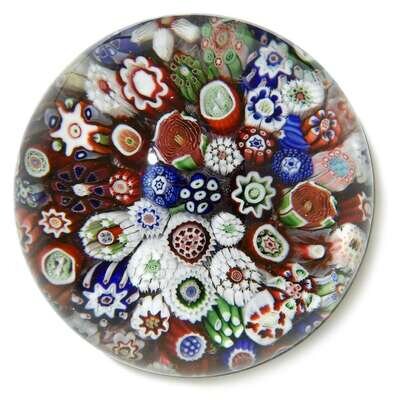 Containing one butterfly cane, a double bird silhouette cane and two pink and green "Clichy" roses; with an unusually high dome.