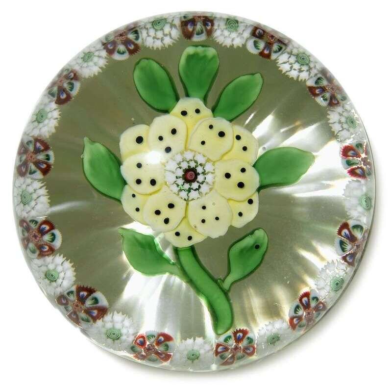 Antique Baccarat wheatflower and millefiori garland paperweight