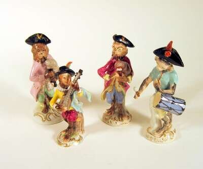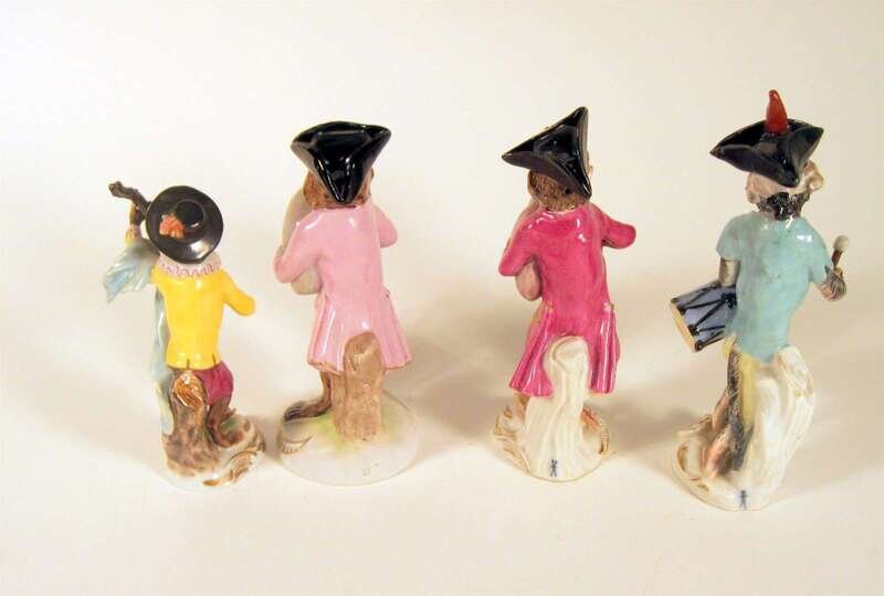 Four Continental porcelain monkey band figures late 19th/ early 20th century