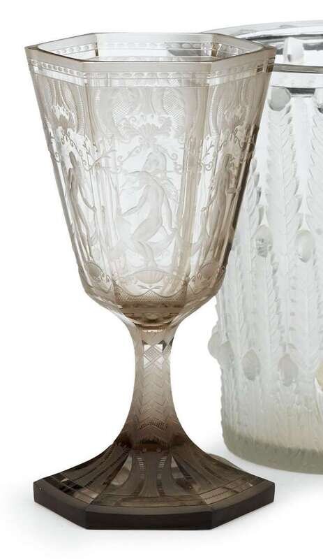 Orrefors 'Sex Gracer' pattern etched glass vase designed by simon gate, circa 1930