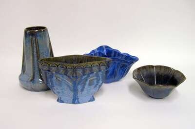 Four Fulper blue and brown glazed art pottery pieces early 20th century