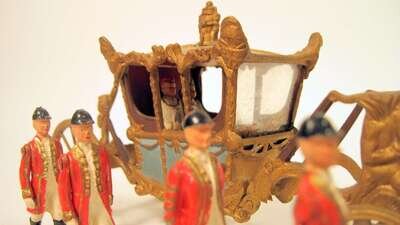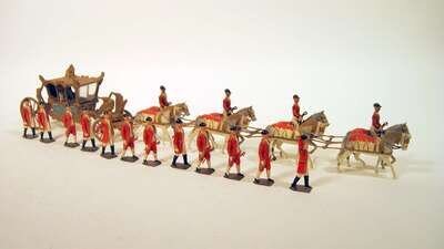 Britains painted lead 'Magestys Stage Coach' and attendants