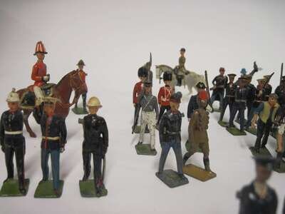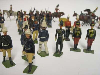 Group of Britains painted lead soldiers, foreign regiments and civilians