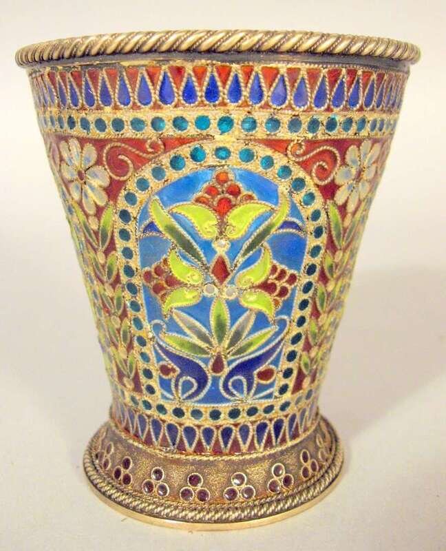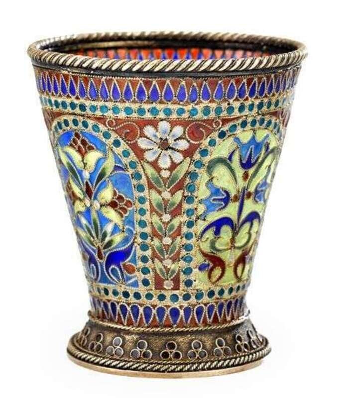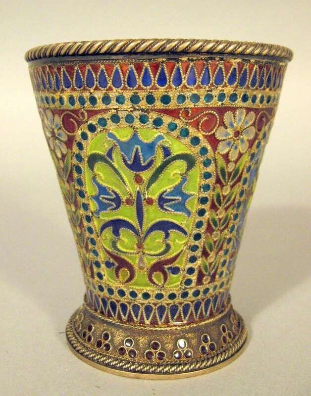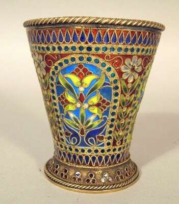 Russian silver and plique a jour enamel beaker mark for p. ovchinnikov, moscow