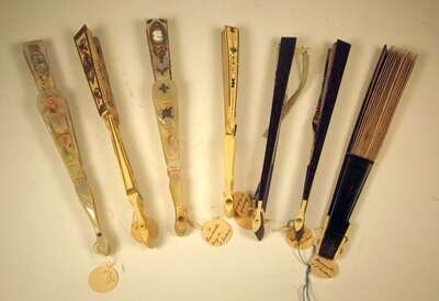 Eight Continental hand-colored and mother of pearl fans late 19th/early 20th century