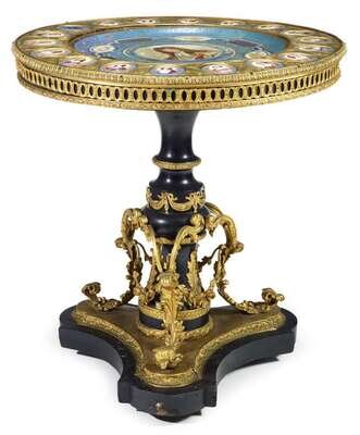 Napoleon III style gilt-metal and serves style porcelain mounted gueridon