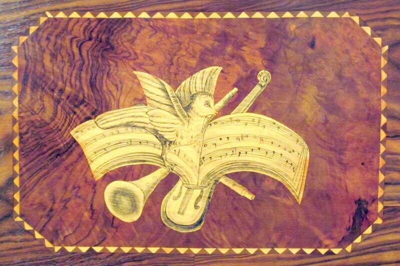 Swiss walnut and marquetry inlaid music box late 19th century with alterations