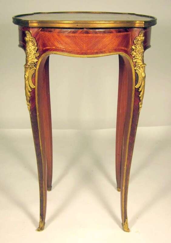 Louis XVI style kingwood gilt metal mounted marquetry table en chiffonier