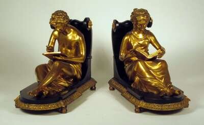 Pair of Empire style gilt and patinated metal book ends
