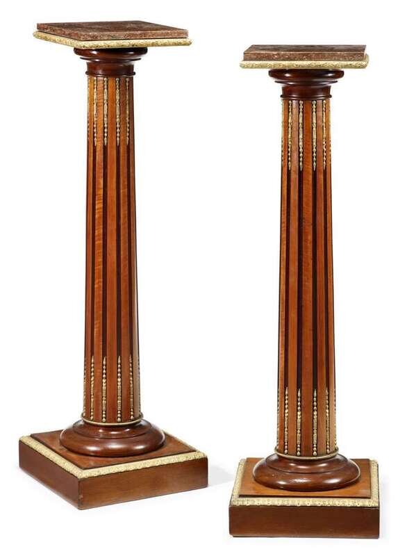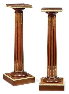 Pair of Louis XVI style satine, giltwood and rouge marble torcheres part 19th century