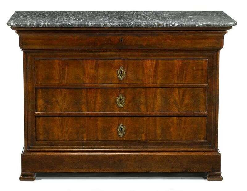 Empire mahogany marble top commode