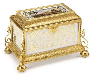 French gilt bronze and reverse painted milk glass casket box 19th century