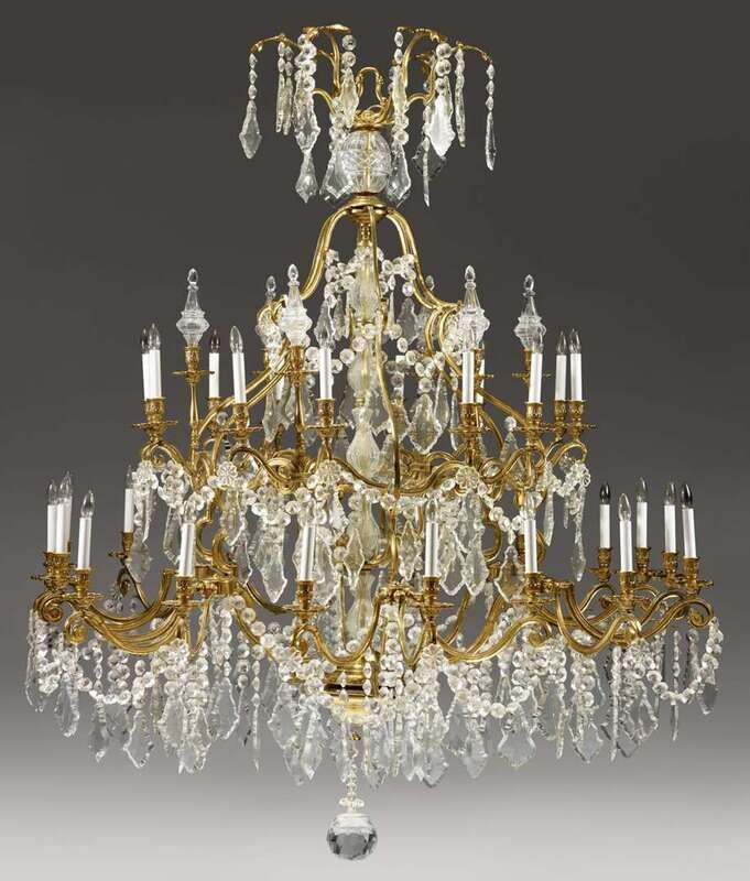 Large and Impressive Louis XVI style gilt metal and luster chandelier