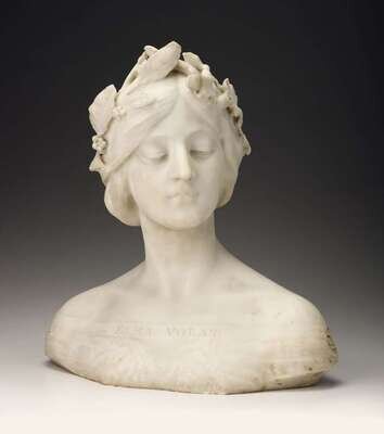 Laurel crowned female bust, FAMA, VOLAT, inscribed to chest.