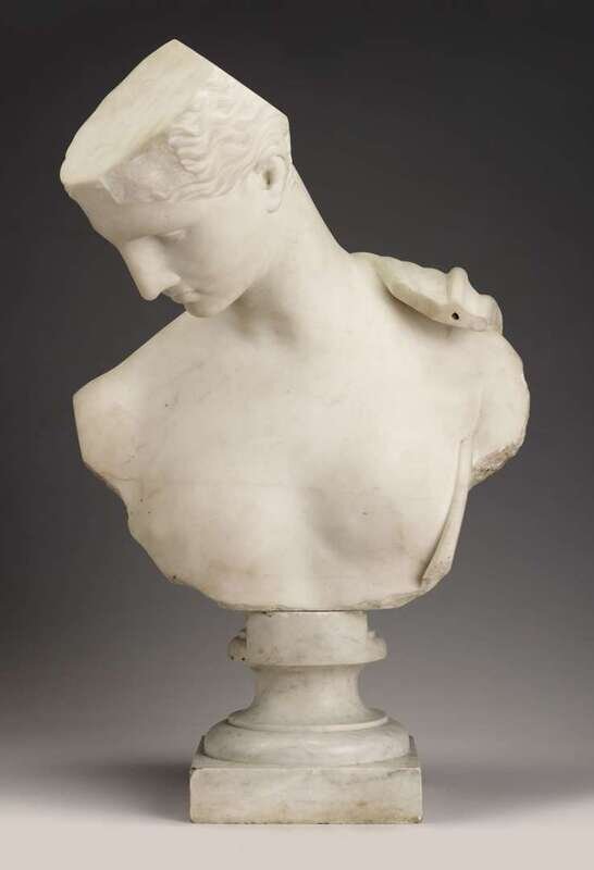 Italian white marble bust of a young man signed chiu'azzi napoli, early 20th century