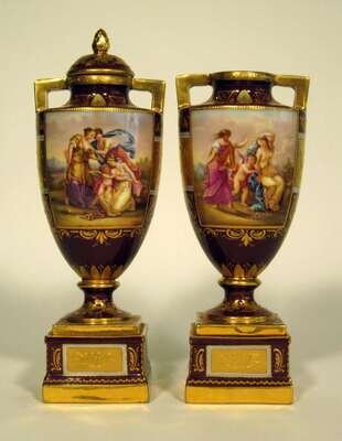 Two Royal Vienna covered porcelain urns late 19th/early 20th century