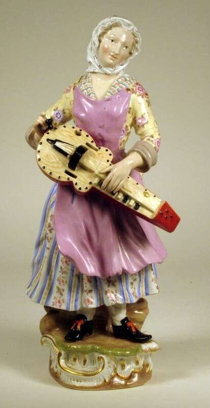 Meissen porcelain figure of a woman playing a hurdy-gurdy late 19th/early 20th century