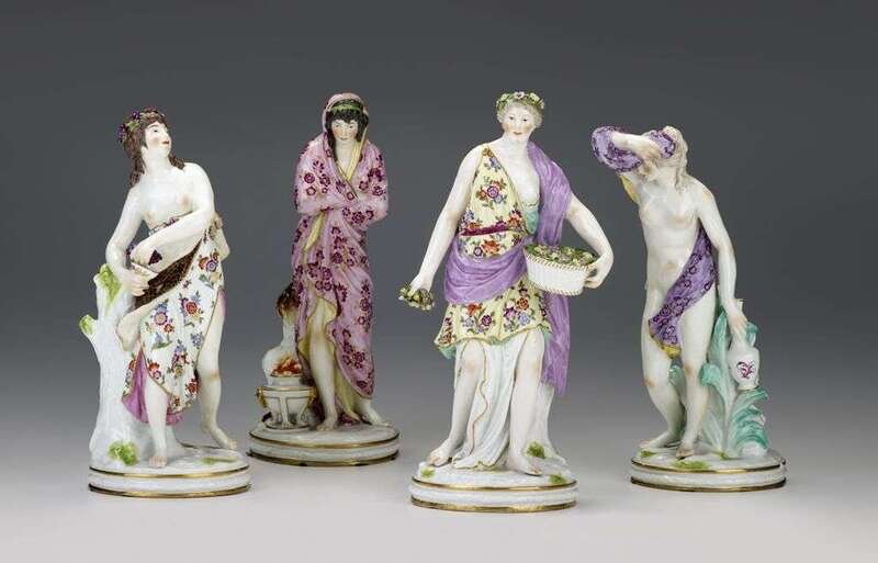 Set of four German porcelain allegorical figures of the Seasons possibly sitzendorf, 19th century