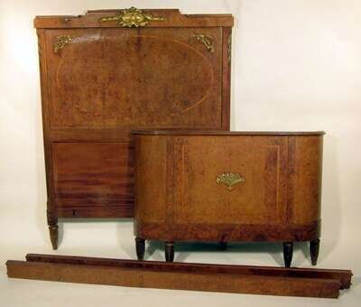 The square molded headboard mounted with bell flowers and central crest, with rounded end.
