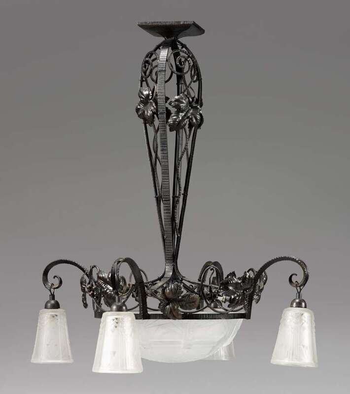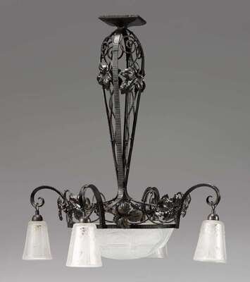 Muller Freres cast iron and molded glass chandelier