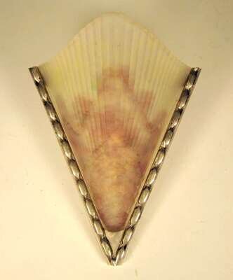 Electrified, triangular form with scallop molded and frosted shade.
