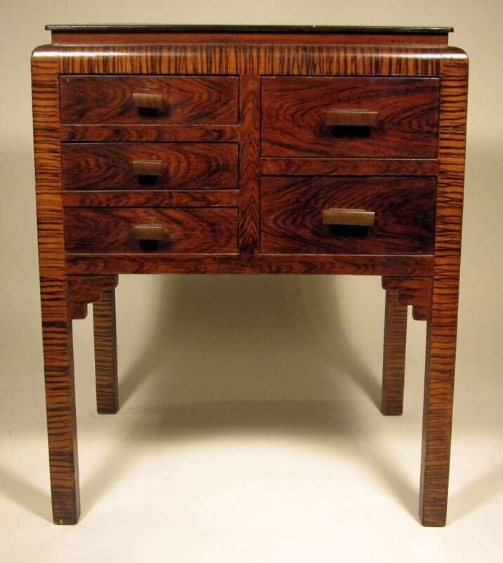 The molded rectangular top over five short drawers, raised on rounded square legs.