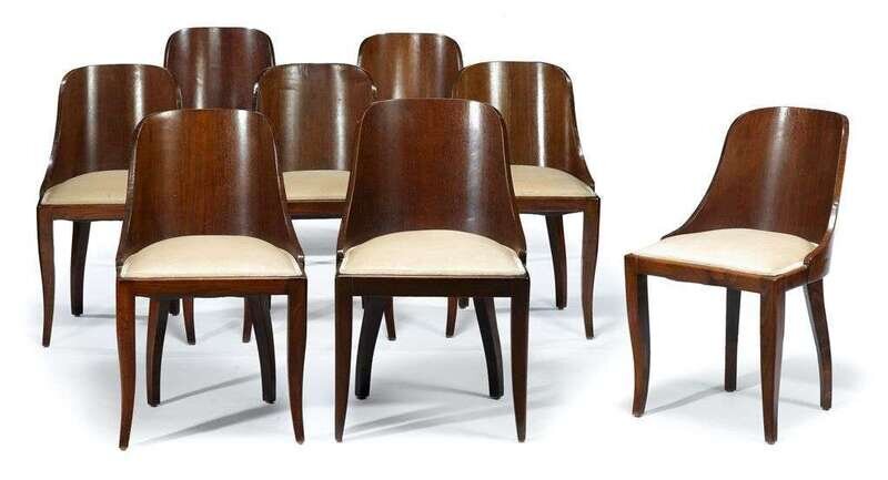 Set of eight French mahogany gondola style dining chairs early 20th century