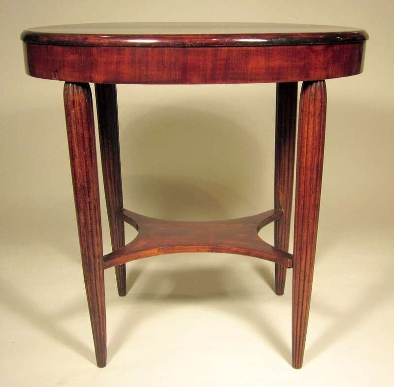 The oval top with diamond cartouche to center, over conforming tier, raised on lobed tapering legs.