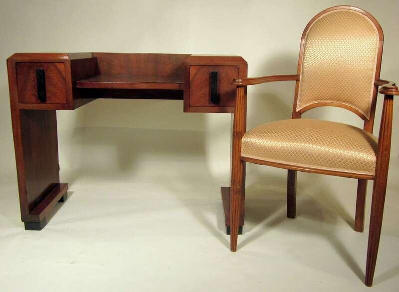 French walnut desk and associated chair