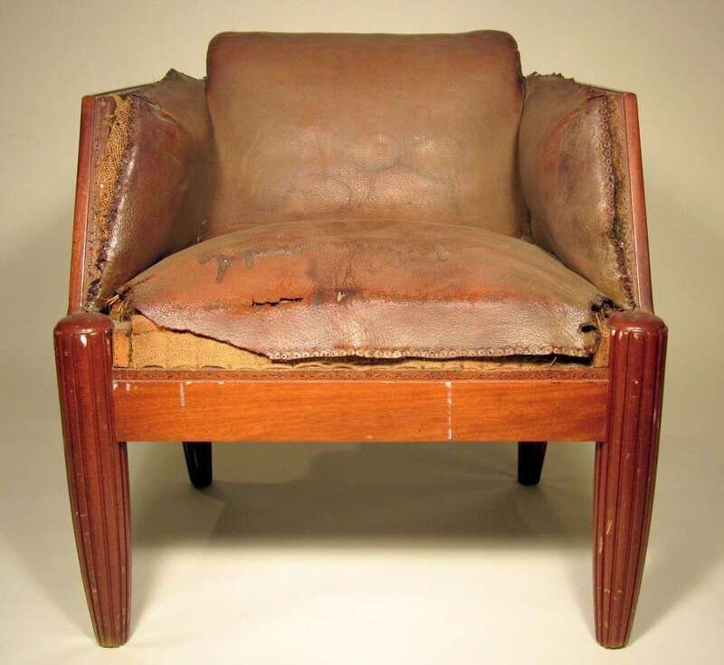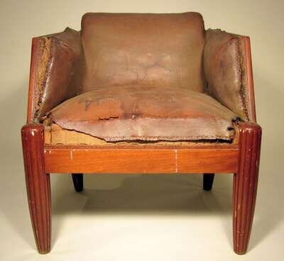 French walnut and brown leather bergere early 20th century