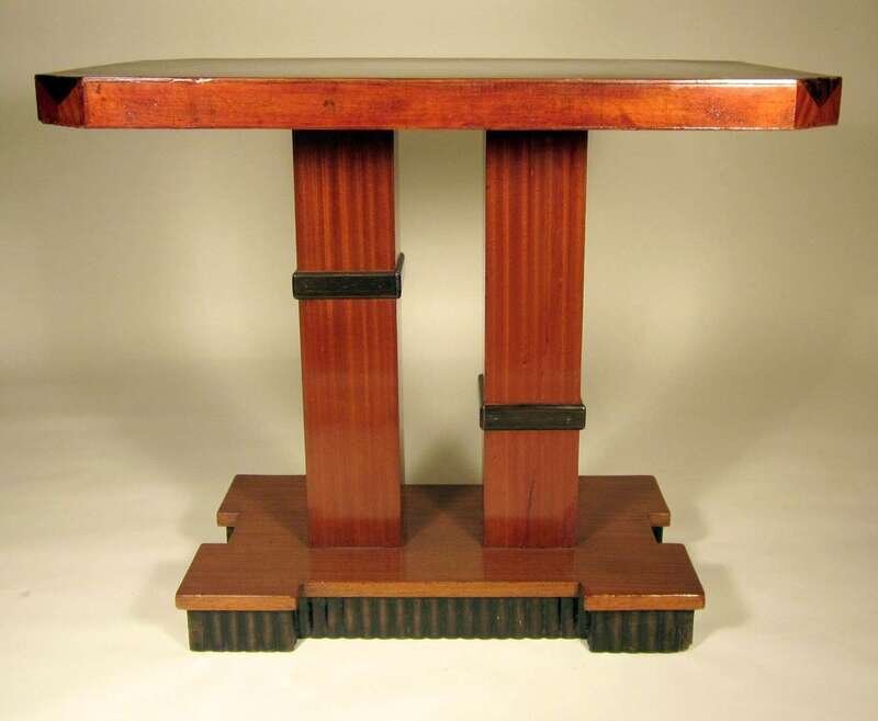The rectangular canted top raised on twin block supports terminating on square platform base.