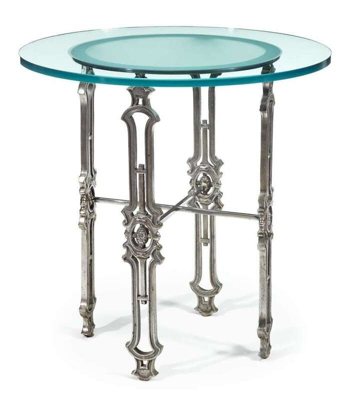 French glass and stainless steel occasional table