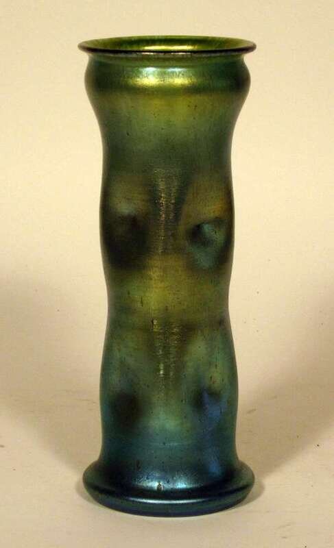 Loetz green to blue iridescent pinched glass vase early 20th century